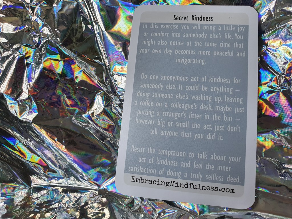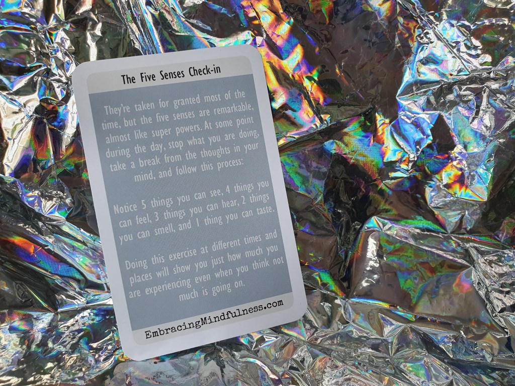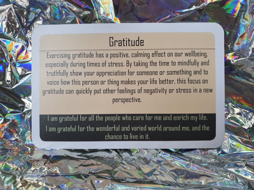One of the ways I do this is to use the five senses technique, so I was really pleased to see this one listed amongst the cards. Using this technique is a great way at grounding, particulary if you’re feeling overwhelmed, anxious or panicked.