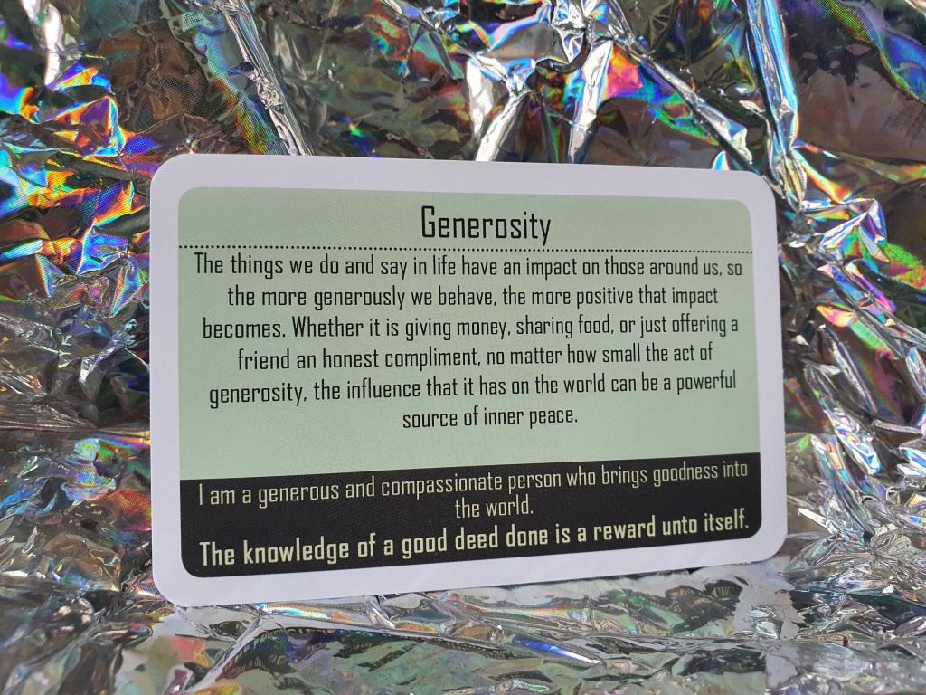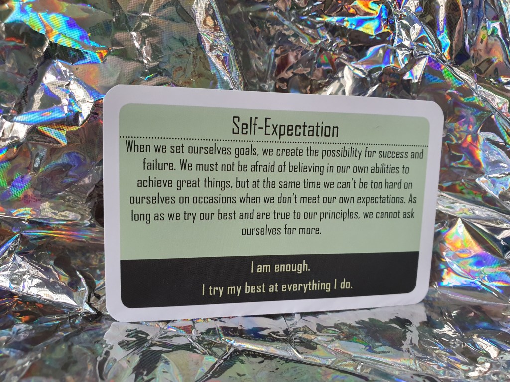 Even though I am picking out a new card every couple of days, I selected a few to share because again, I feel that these are ones we all are very quick to shut ourselves down on – Generosity, Gratitude, Self-Expectation and Self-Forgiveness.