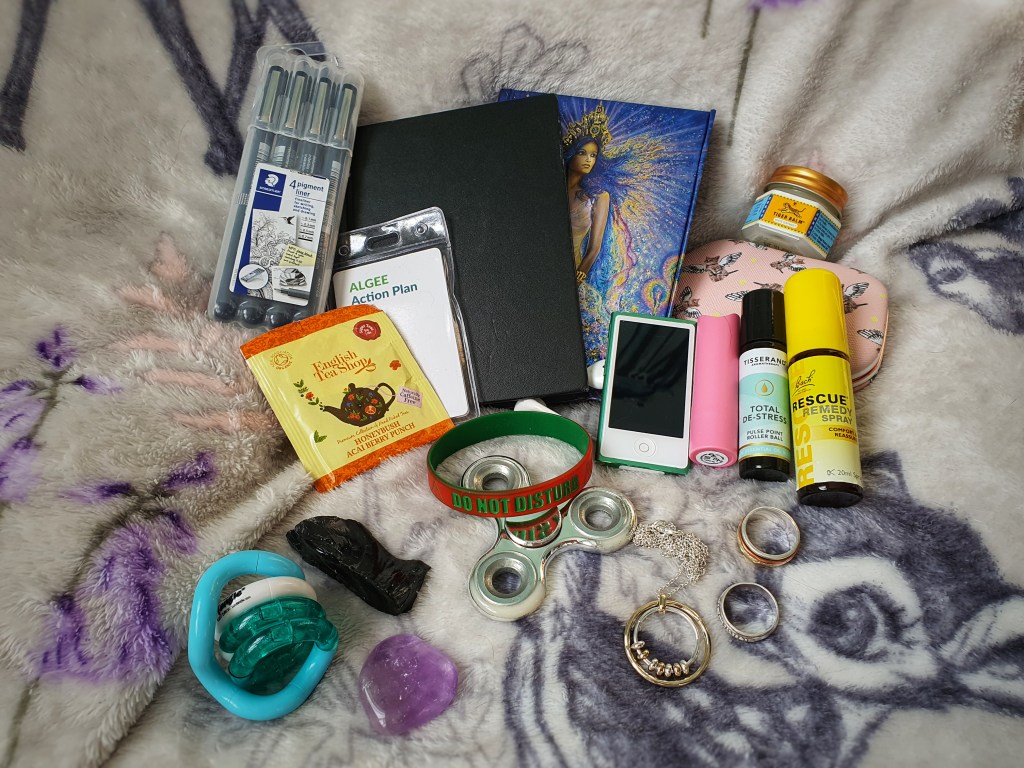 So as you can see, I either have a very big pencil case or I have a bottomless bag! (This isn’t all of it either, as I have to carry with my medication, so I’m surprised I’m not rattling more than I am stuck on the spot because of the weight of it all!!)