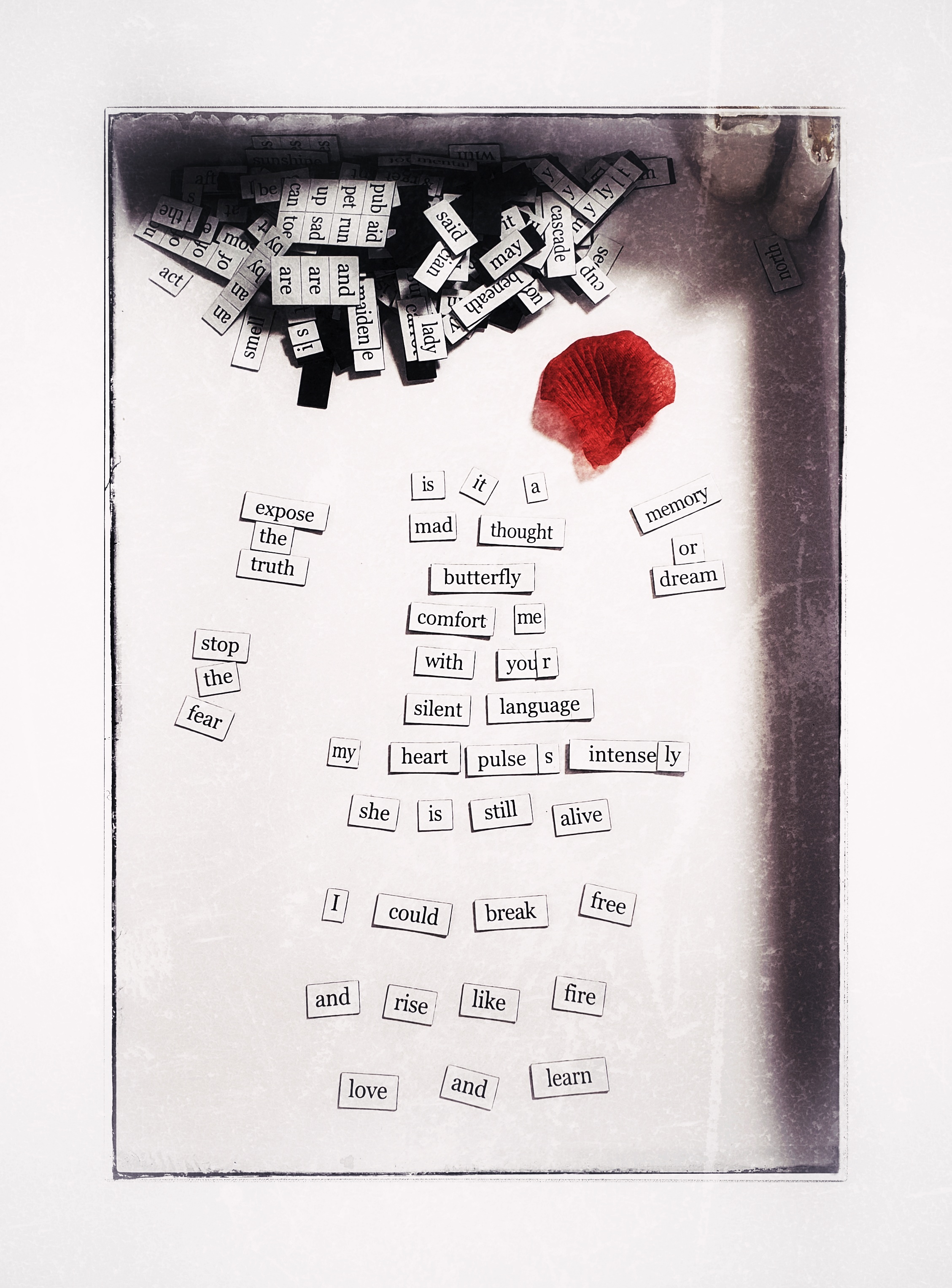 Tom guided me through deconstructed poetical art, keeping me engaged and mindful of my own traumas untold. I was held with each step, and each moment we moved inwards, and each moment we paused. Tom read an excerpt from ‘A Story Like the Wind’ (Laurens Van der Post) where myths and magic meet in utopia, then, just as I felt those wings unfold, I was captured in a moment of time, constructing poetry from deconstructed, fractured words. Greeted by ‘The Butterfly Farmer’. As I spent some time playing with words, I felt liberated, enlightened, and burning as if the phoenix has risen once more.