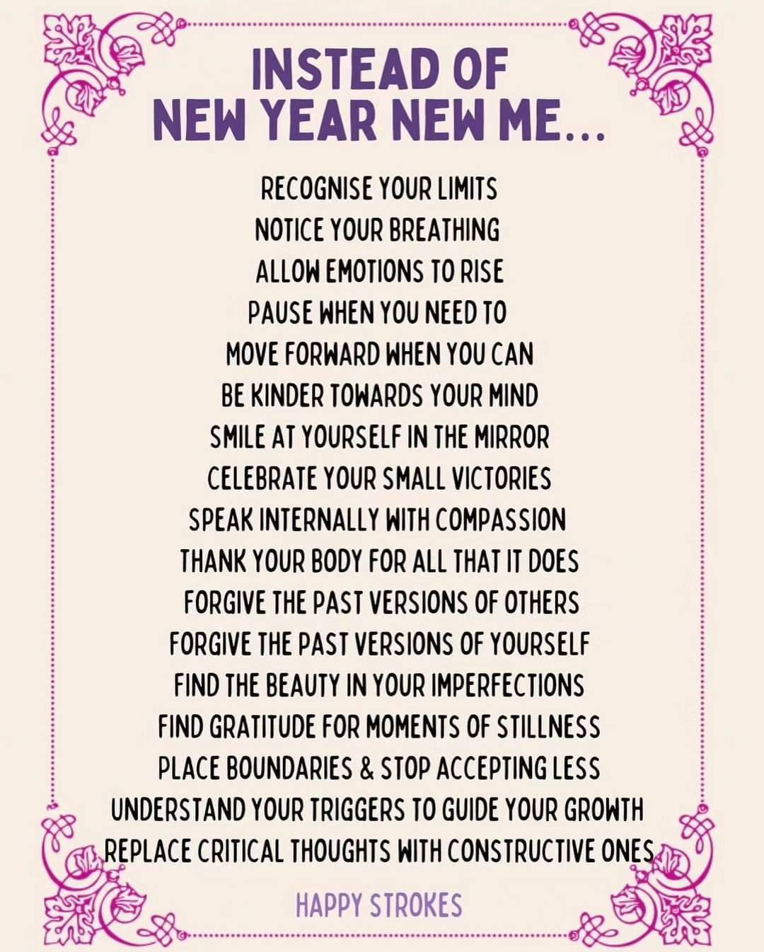 A new year does not have to be momentous. You are where you need to be. Take the next year one step at a time. Day by day, with strength, courage, and admiration. Give yourself a pat on the back and say, “This is me. This is my life. I am embracing my soul, my heart, my whole being. I am conquering a whole new mindset. I have absolutely, 100% got this, and whatever happens, it’s okay because I am powerful.