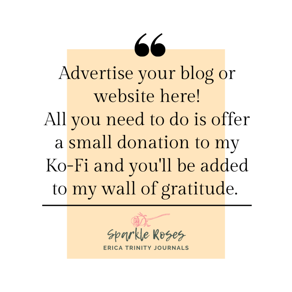 If you’ve read this blog and you like what I’m doing, please consider supporting me by donating a ‘coffee’, a donation to contribute to my work, time and materials which go into making this wonderful site. I’ll be adding guest posts and reviewing resources for mental health and chronic illness, so you can read before you buy. By donating, you also have the amazing opportunity to be featured on my Ko-Fi Page of Gratitude, where you can advertise your own website or blog. Don’t have a blog? No problem, I’ll add in your name, because I want you to know how appreciated you are!