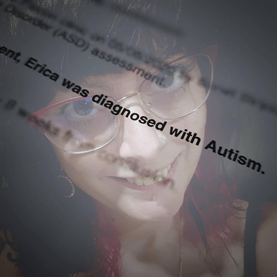 Photo of Erica with an overlay of letter from ASD assessment